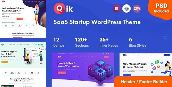 Qik 是一款 SaaS 和启动软件 WordPress 主题,适用于 SaaS、启动机构、软件、SEO、应用营销公司。 Qik 预装了 12 个精心设计的 SaaS 主页以及行业标准内页。 Qik 由排名第一的拖放页面构建器 Elementor 提供支持,用于设计和开发所有页面。您在 Qik 上看到的所有图像、插图、资源都包含在演示导入中。最后但最不重要的是,当您购买 Qik 时,您将获得主页和内页的所有 PSD 文件。