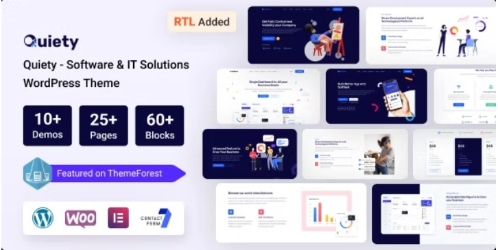 Quiety Software IT 解决方案 WordPress 主题是一款功能强大、易于使用、移动友好、高度可定制的 IT 解决方案和 SAAS 产品,采用 Bootstrap 5 CSS 框架构建,并支持 WooCommerce。该主题包含 10 个令人惊叹的主页和 12 个以上的内页。它在标准设备上 100% 响应。它是一个功能强大的 WordPress 主题,专为致力于开发桌面和移动应用程序、SaaS、软件、IT 解决方案和其他数字产品的公司、机构、初创公司而构建。我们使用了具有拖放功能的 Elementor 页面构建器。