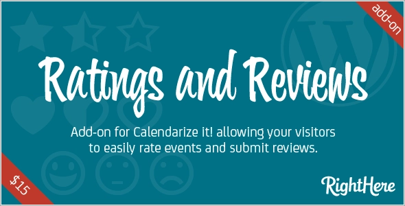 Calendarize it! 的评级和评论插件!让您的访客轻松评价和评论活动。他们可以使用 Facebook Connect 和 Twitter Connect 轻松添加评级和评论。
