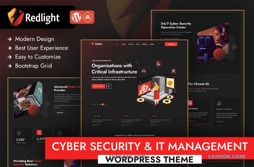 Redlight网络安全IT管理主题是一款功能强大且专业的WordPress主题,专为网络安全公司、IT管理公司和技术企业设计。该主题提供了一套全面的特性和功能,可以满足这些行业的独特需求。该主题以其时尚而现代的设计,为网络安全和 IT 管理领域的企业创造了视觉上令人惊叹的专业在线形象。该主题还包括各种可定制的元素,例如布局、配色方案和版式,允许用户创建反映其品牌的独特且个性化的网站。此外,Redlight 网络安全 IT 管理主题还附带一系列预构建的页面和部分,包括服务页面、案例研究、博客和产品组合,使企业可以轻松地向潜在客户展示其产品和专业知识。该主题还完全响应并针对移动设备进行了优化,确保网站在所有屏幕尺寸上看起来都很棒并且可以无缝运行。凭借其用户友好的界面和先进的功能,Redlight 网络安全 IT 管理主题为网络安全和 IT 管理企业提供了强大而高效的解决方案,以建立强大的在线形象并有效展示其服务和能力。