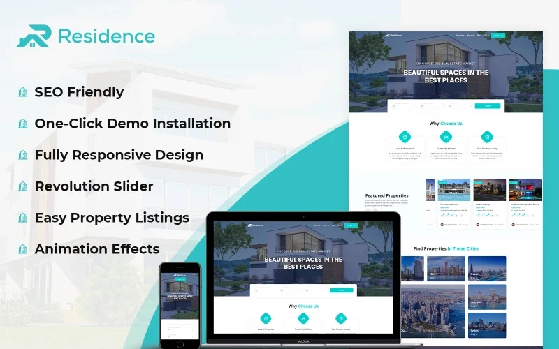 住宅 – 房地产代理 WordPress 主题适合总体规划的社区、庄园、房屋、公寓、公寓、房地产经纪人协议、建筑群、适销对路的经纪人以及任何其他想要在网络上推广其服务和成就的人。尝试使用这个令人眼花缭乱的 WordPress 主题,为您的公司提供良好的在线形象。用户可以根据房产类型和价格范围选择导出房产。