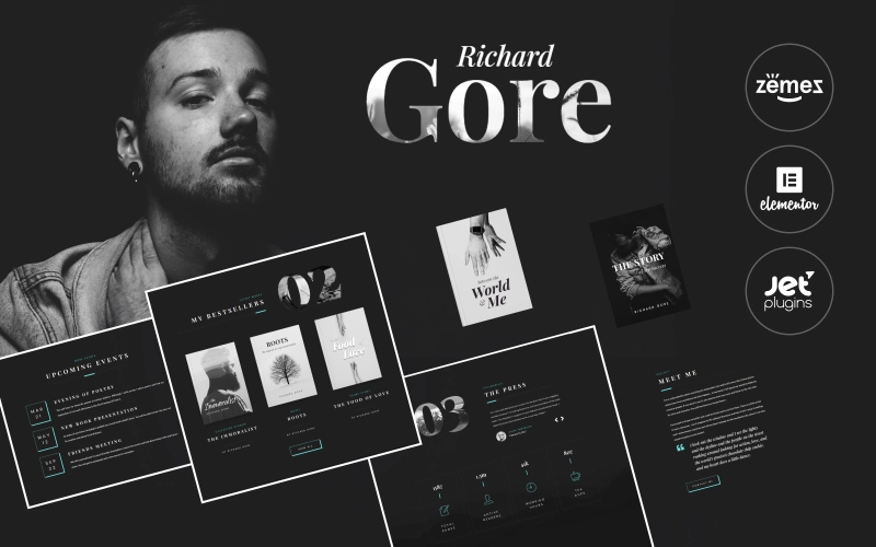 Richard Gore Stylish Writer Portfolio Template with Elementor Builder WordPress Theme 1.0.1 GPL Theme