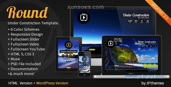 Round 是一款独特、干净、响应式、全屏倒计时/即将推出/正在建设/等待一页迷你网站模板,采用简约风格。具有动画效果的菜单。高分辨率视网膜显示屏就绪。