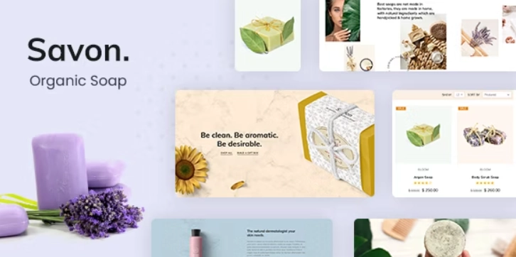 Savon WordPress 主题非常适合手工肥皂、有机商店、护肤品、水疗、健康、美容化妆品和天然产品公司。