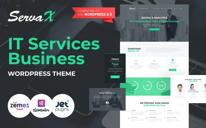 每个 IT 专业人员或 IT 公司都需要拥有一个高质量的网站。此外,这个网站应该是多功能的。不同市场收集了许多 IT 领域的模板。但 Zemez 团队为您提供独特的新奇!它是 ServaX IT 服务 WordPress 模板。