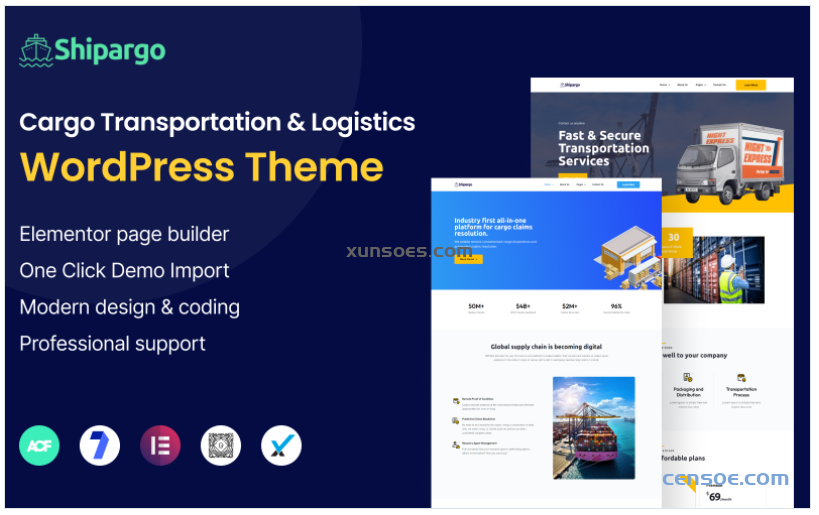 Shipargo 是一款面向运输和货运公司的优质货运、运输物流 WordPress 主题和网站模板。建立您自己的货运、船舶运输服务等网站。Shipargo 易于设置和使用主题,使您能够建立一个业务网站,例如:船舶货运服务、货运服务、不同的物流服务、航空运输服务、物流工作和更多。它提供了创建美观网站的简单路线图,以便您可以回到对您的业务和客户最重要的事情上。 Shipargo 仅在 Templatemonster 上可用,因此请继续阅读,了解为什么它非常适合您公司的 WordPress 网站!