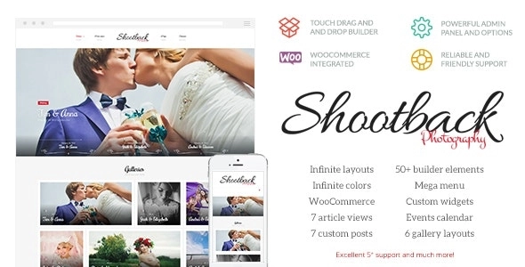 Shootback 响应超快,支持视网膜,并基于 Twitter Bootstrap 框架构建。它具有干净、现代和有趣的设计,配有超级强大的 TouchSize 布局生成器,提供无限的可能性和选项。我们的页面生成器是我们主题的核心,让您可以完全控制您的网站,并让您创建适合您需求的网站。