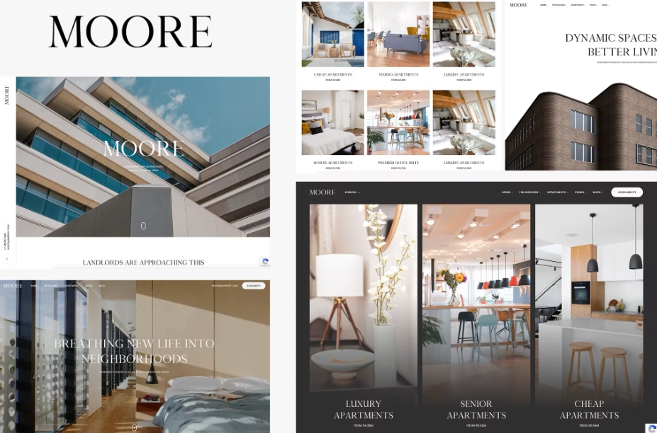 单一房产和公寓大楼 WordPress 主题 Moore 是一个干净优雅的单一房产和公寓大楼 WordPress 主题。它专门针对单一房产、房地产、房地产代理和代理、公寓大楼、室内设计和建筑项目。该模板包含创建脱颖而出的房地产网站所需的一切。 4 个独特的主页 一组 4 个令人惊叹的主页版本将允许您快速创建内容,而无需任何编码知识。 公寓列表 我们设计了 5 个即用型房产列表模板,帮助您以有吸引力的方式展示您的所有房产,以吸引受众的注意力。 公寓详情 该页面可让您轻松展示房产的所有细节,并通过平面图帮助您的客户查看房屋设计。 便利设施 我们创建了预制的便利设施布局,使您能够通过几个简单的步骤展示便利设施 邻里: 这是一个有用的工具,可以显示您的房产附近的所有地点,例如:餐馆、学校、交通、购物中心…… 可用性 通过高级搜索表单,您的受众可以在几分钟内搜索到满足其要求的房屋 进步 您可以利用这种惊人的功能来宣传建筑物和房屋的建造进度。 3 种画廊风格 我们构建的 3 种画廊风格非常适合展示您的出色表现 文件 专为显示重要文件而设计 其他很棒的功能 4 主页布局 从 Elementor Page Builder 构建页面 从 Elementor 页面生成器构建标题 从 Elementor 页面生成器构建页脚 高级 WordPress 实时定制器 一键导入演示内容 无限的颜色样式。 使用提供的 POT 文件即可进行翻译 支持多语言网站 与 WPML 插件兼容 兼容 Polylang 插件 完全响应 倒计时器 平滑滚动 粘性标题 CSS3动画 包括整个 Font Awesome 628+ 图标 支持联系表 7 600 多种 Google 网页字体 跨浏览器支持 儿童主题准备就绪 非常清晰的文档(一步一步)