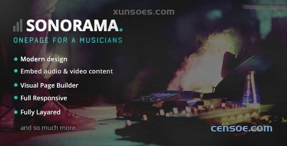 Sonorama 是一个 WordPress 主题,适合乐队、专业DJ、歌手以及任何与音乐行业相关、想要向世界展示自己的才华和声音的艺术家。