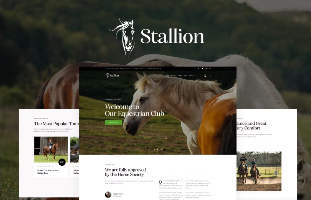 时尚的骑马马术中心WordPress主题Stallion是一个现代有吸引力的WordPress主题。它适用于马术公司、骑马协会、俱乐部、学校、课程、马场、商店和马厩公司。漂亮的设计和方便的布局非常适合室内室外马术俱乐部,包括活动、工作人员(训练员、教练、教练)、定价和预订选项(骑马)。也适用于驯马中心、牛仔竞技竞技场。马术中心 WordPress 主题功能 *骑马课程在线预订 *预制定价表 *马匹马术中心团队的特殊页面 *优秀画廊 *服务、感言、新闻模块 *Woocommerce 骑马装备商店