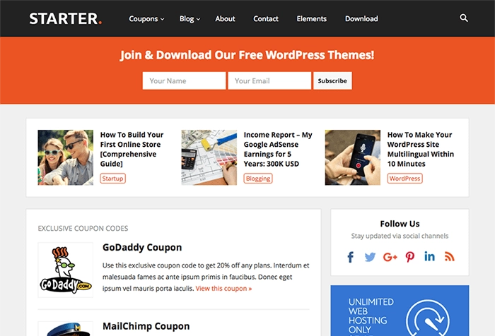 移动响应式设计 无限的主题颜色选项 无限的菜单栏颜色选项 谷歌字体选项 WooCommerce 支持 粘性导航菜单 帖子循环布局样式 标题社交图标 场地布局 特色帖子 单个帖子的左侧边栏 单个帖子上的面包屑 单个帖子的社交分享 单个帖子上的相关帖子 单个帖子的作者信息框 时事通讯订阅小部件 广告小工具 热门帖子缩略图小部件 最近的帖子缩略图小部件 浏览次数最多的帖子缩略图小部件 随机帖子缩略图小部件 “返回顶部”网站页脚上的按钮 页脚文本 版权编辑 翻译就绪 一键演示导入