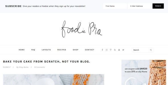 她的极简主义风格和简洁的设计使她时尚而苗条,但在功能方面她确实具有冲击力。 Foodie Pro 是迄今为止最灵活的 Genesis 主题,具有简约的风格以及大量的颜色和排版选项。 Foodie Pro 主题 Foodie Pro 主题包括以下功能: 6 个布局选项 自定义标题特色图像 HTML5 标记 移动响应式主题选项 翻译就绪布局选项: