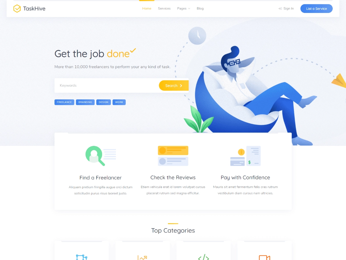 使用 TaskHive 创建一个功能齐全的自由职业市场,无需任何编码技能,TaskHive 是一个干净、现代的服务市场 WordPress 主题。