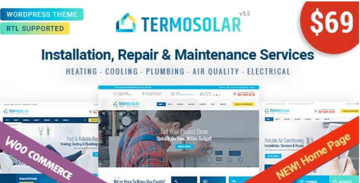 Termosolar 是一个设计精良、功能齐全的 WordPress Woocommerce 主题,适用于供暖、制冷、管道、电气安装维护服务。我们为任何维护服务站点创建了所有必要的元素、页面和表格。从今天开始,使用 Termosolar 将您的访客转化为客户。