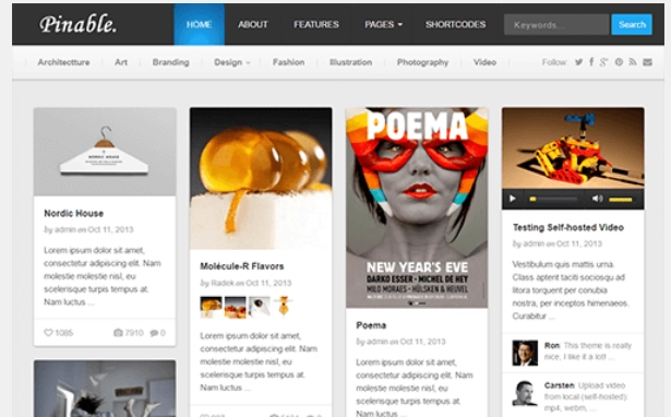 Pinable 的设计灵感来自 Pinterest,非常适合在线共享任何类型的内容。无论您是固定照片、文章还是视频,Pinable 都有匹配的帖子类型格式。 通过主题设置,您可以调整网站的布局,直到其完美适合您的项目。