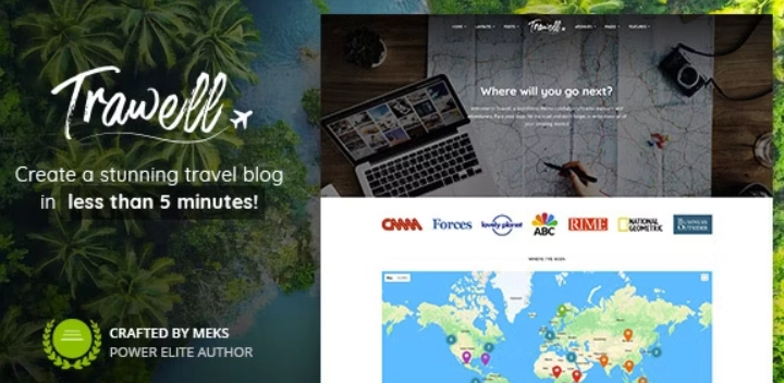 Trawell 是一款专业的旅行博客 WordPress 主题,经过精心设计,可帮助您轻松创建令人惊叹的旅行博客、旅行指南或旅行杂志网站,并具有每个旅行博主简化其旅行冒险所需的智能功能。