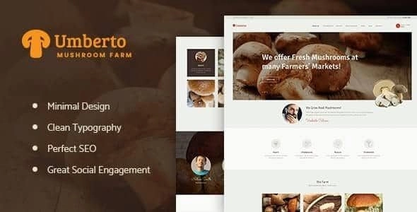 Umberto 是一个响应灵敏、干净清新的蘑菇农场有机产品商店 WordPress 主题。它具有专为蘑菇农场服务业务而设计的现代设计。