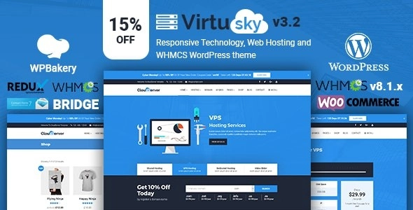 VirtuSky | Responsive Web Hosting and WHMCS WordPress Theme 3.4.1 GPL Theme