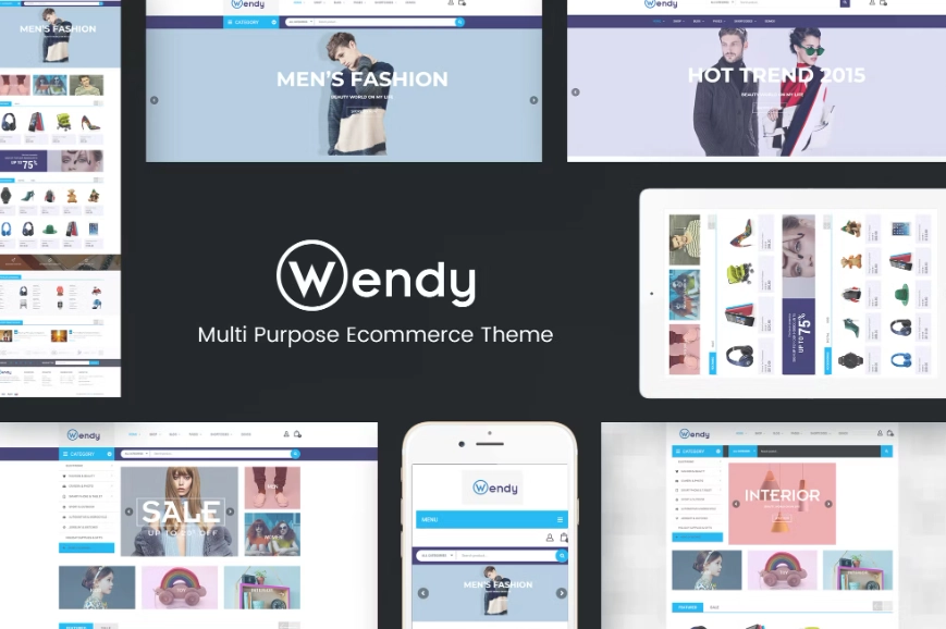 Wendy 多商店 WooCommerce 主题适用于任何销售多种类型产品的商店,如家具、衣服、鲜花、礼品、配件、电器、玻璃、鞋子