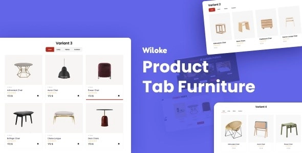 Wil 是一个 Elementor 插件,可帮助您通过时尚现代的设计使您的家具网站更具吸引力和直观性。每个家具物品都配有自己的卡片,您可以在其中显示物品库存状态、评论、价格、愿望清单和快速查看。 Wil 还允许您的客户按类别选项卡探索项目。