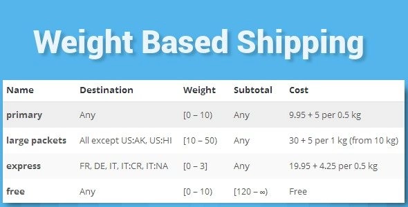 基于重量的运输是 WooCommerce 的一种简单而灵活的运输方法,主要侧重于购物车重量(但不限于)来计算运输成本。该插件允许您根据各种条件添加多个规则。