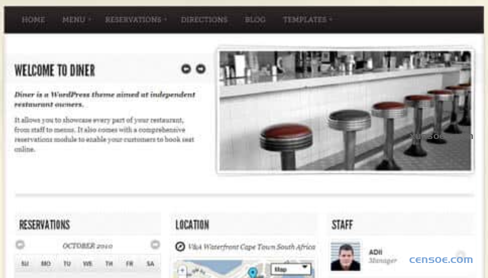 Diner 是来自 WooThemes 的美味餐厅/酒吧 WordPress 主题。该主题允许您展示您的食物菜单、营业时间、地点,并通过自定义的内置预订系统在线预订餐桌。 Diner 主题包括可自定义的主页布局、带图片的食物菜单页面模板、15 个自定义小部件、11 种替代配色方案、主题管理设置面板等。