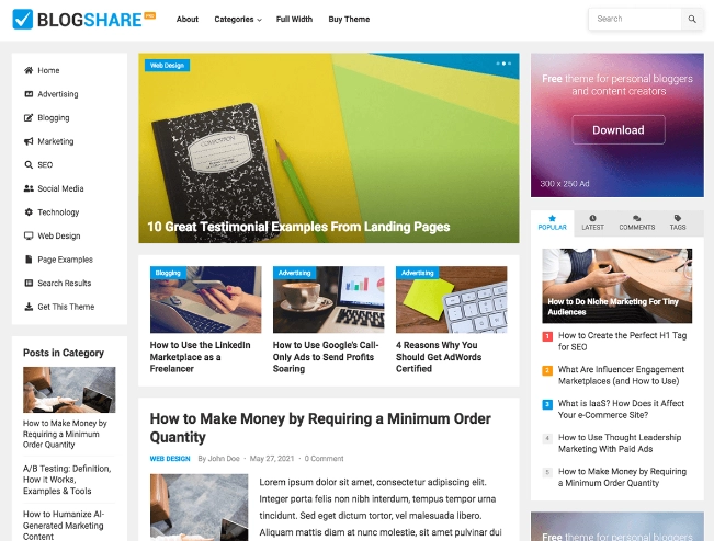 BlogShare Pro 是一个现代且干净的 WordPress 主题,适用于基于内容的博客和网站。它为您的内容提供了精彩的展示,非常适合个人博主和内容创作者。该主题还集成了多个广告位置,您可以将广告或 Adsense 代码放置在特色内容滑块下方、帖子列表、侧边栏、帖子内容之前/之后等。