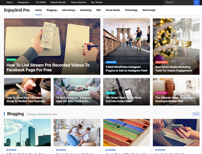 EnjoyGrid Pro是一款基于网格的新闻杂志主题,设计简洁现代,适合每个想要分享个人故事、最新突发新闻或各种类型内容的人。 EnjoyGrid Pro 将最大限度地提高您网站的点击次数,并将大量访问者带回您的网站。从各种布局选项、特色帖子、最大广告曝光度、SEO 优化和有吸引力的设计,EnjoyGrid Pro 将提供最佳的用户体验和点击率。