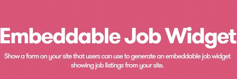在您的网站上显示一个表单,用户可以使用该表单生成可嵌入的职位小部件,显示您网站上的职位列表。 使用 Embeddable Job Widget 插件,您可以在网站上显示一个表单,用户可以使用该表单生成一些嵌入代码。此嵌入代码可以显示您网站上任何使用该代码的列表。 选择小部件的选项后,用户将能够预览小部件并获取嵌入代码以在自己的网站上使用: 嵌入代码可在任何网站上使用,以显示您网站上的职位列表,不需要 WordPress。