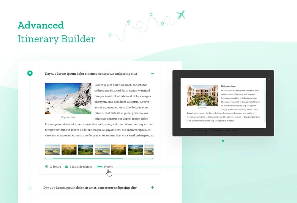高级行程生成器是 WP Travel Engine 插件的扩展,用于在特定旅行的行程部分中添加每天的信息和描述性详细信息。通过该插件,您可以以更具互动性的方式展示您的旅行详细信息。