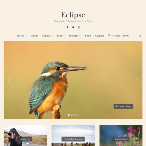 使用 Eclipse 通过简单但功能强大的网站设计来增强您的工作。非常适合想要以简约外观产生巨大影响的摄影师和博主