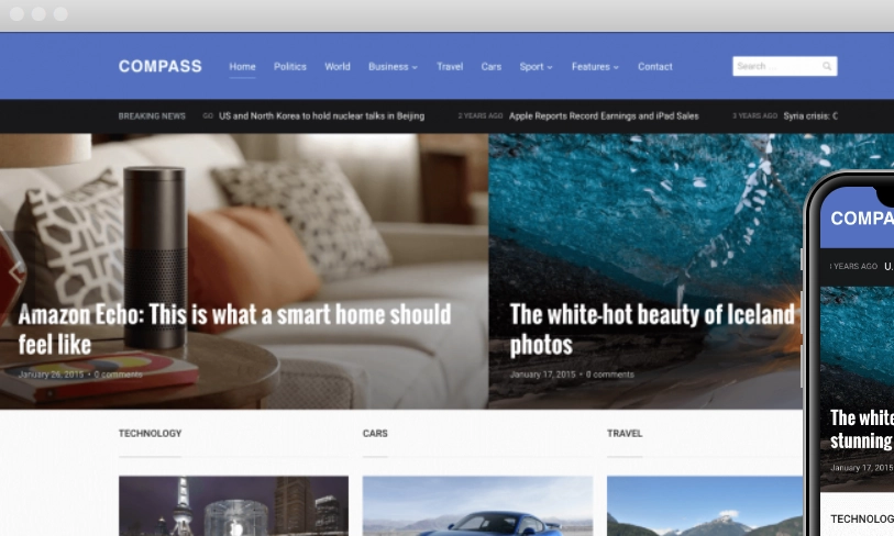 指南针是一个高度复杂且可定制的杂志主题。现代响应式设计让您可以展示您的内容,并且易于配置的主页可以呈现您想要的外观。